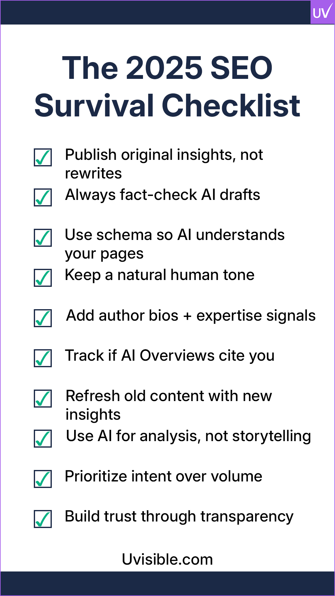 According to a 2025 study by Originality.ai, AI-generated content now appears in 46% of the top 100 search results in competitive niches. That’s crazy, but dangerous. Google has no reason to rank you higher than others when everyone is saying the same thing.