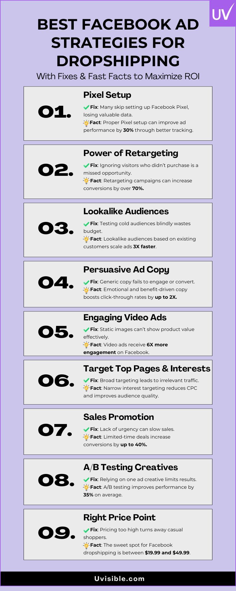 By implementing the best Facebook ad strategies for dropshipping, from setting up the Facebook Pixel to crafting compelling ad copy and leveraging video content, you can reach your target audience and drive conversions.