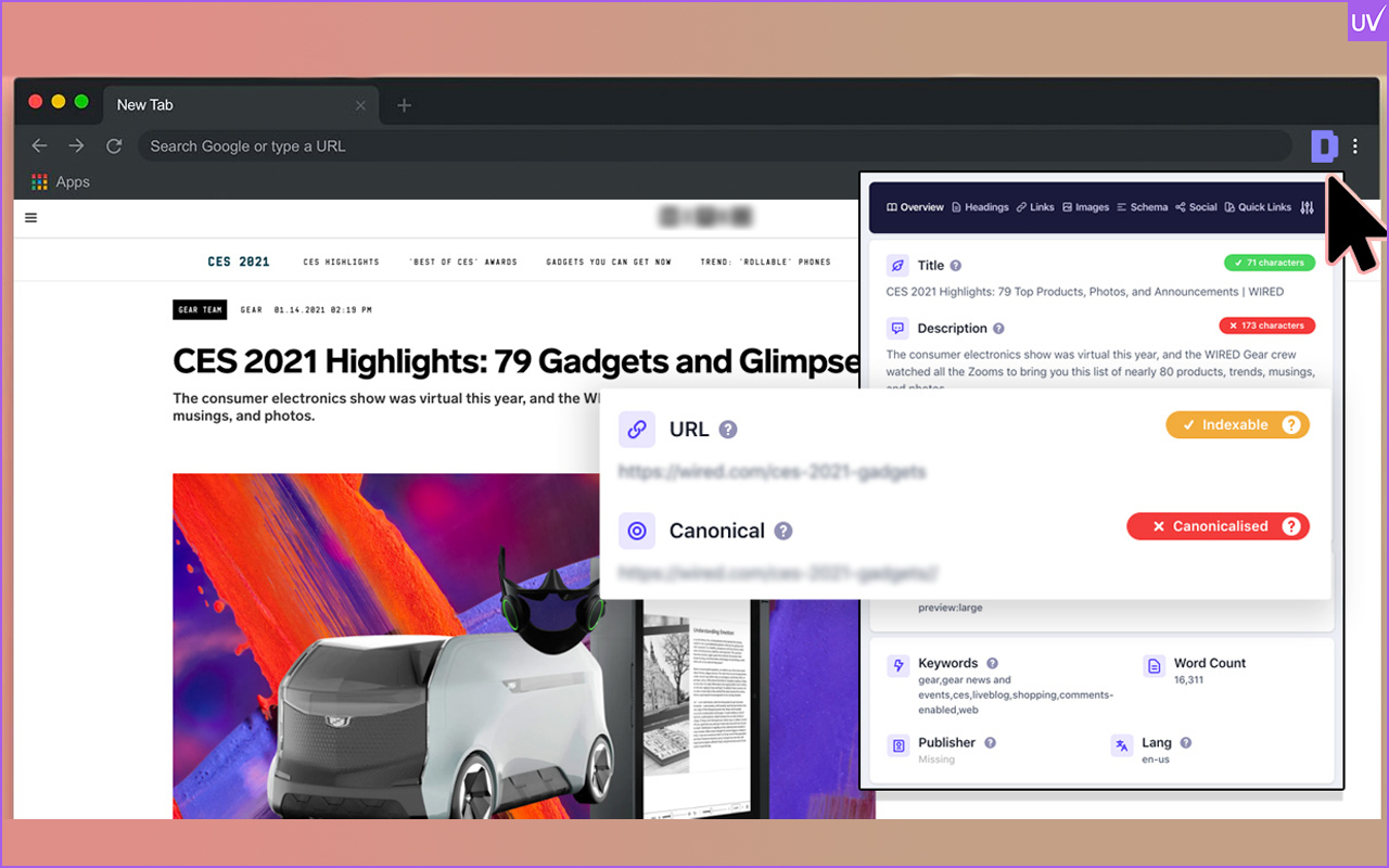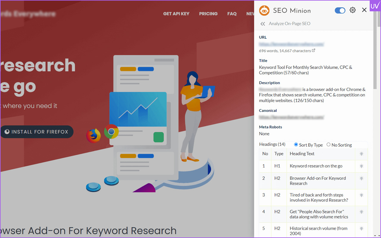 If there is a champion in multitasking, then it would be SEO Minion. This SEO Chrome extension can examine on-page elements, broken links, hreflang tags, and even show previews of your snippets as they appear on Google.