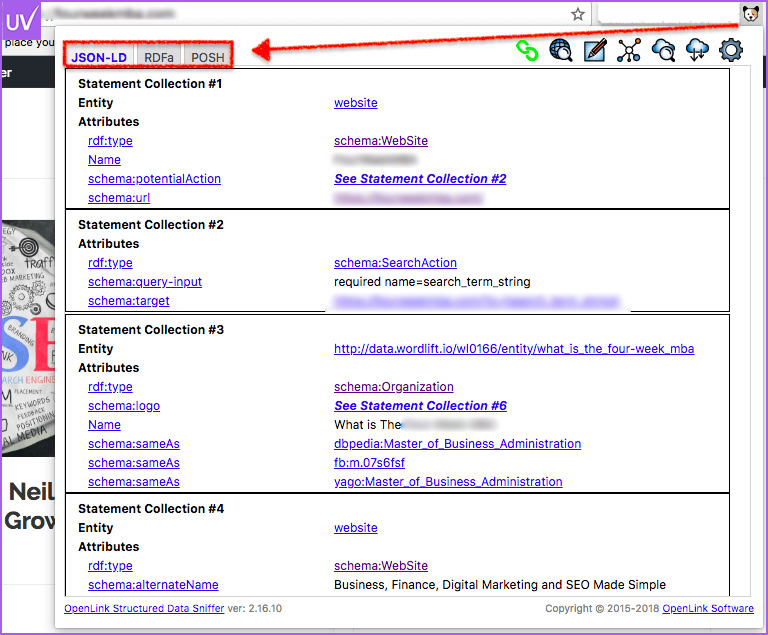 Google appreciates structured data; however, many sites are not using it correctly. OpenLink Structured Data Sniffer shows a breakdown of all schema and markup on a page. From JSON-LD to Microdata.