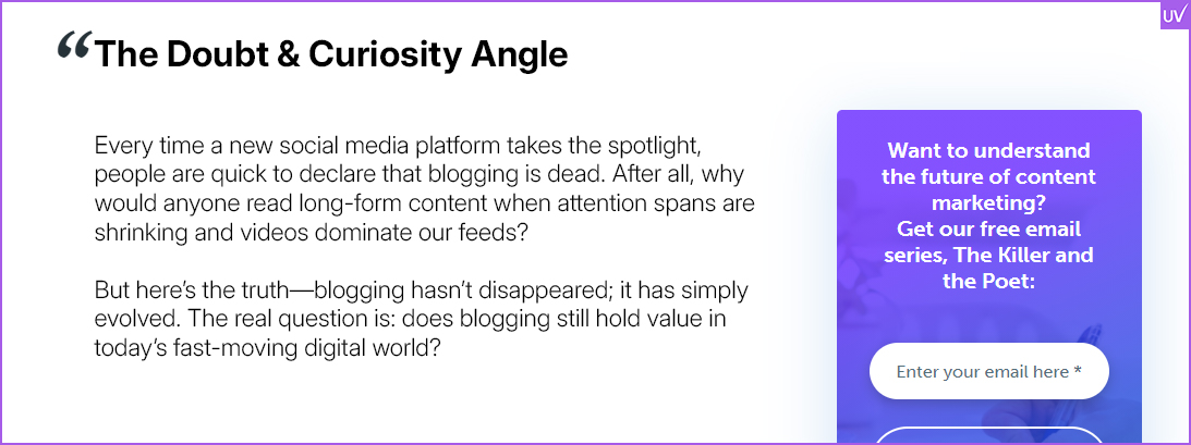 - Begin with a bold question: “Is blogging dead in 2025 or is blogging going to thrive again?”