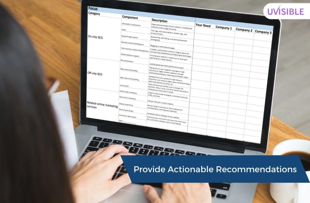 - Provide Actionable Recommendations: Identifying areas for improvement, prioritizing recommendations based on impact and effort, and offering specific strategies to empower clients or stakeholders to take meaningful action.