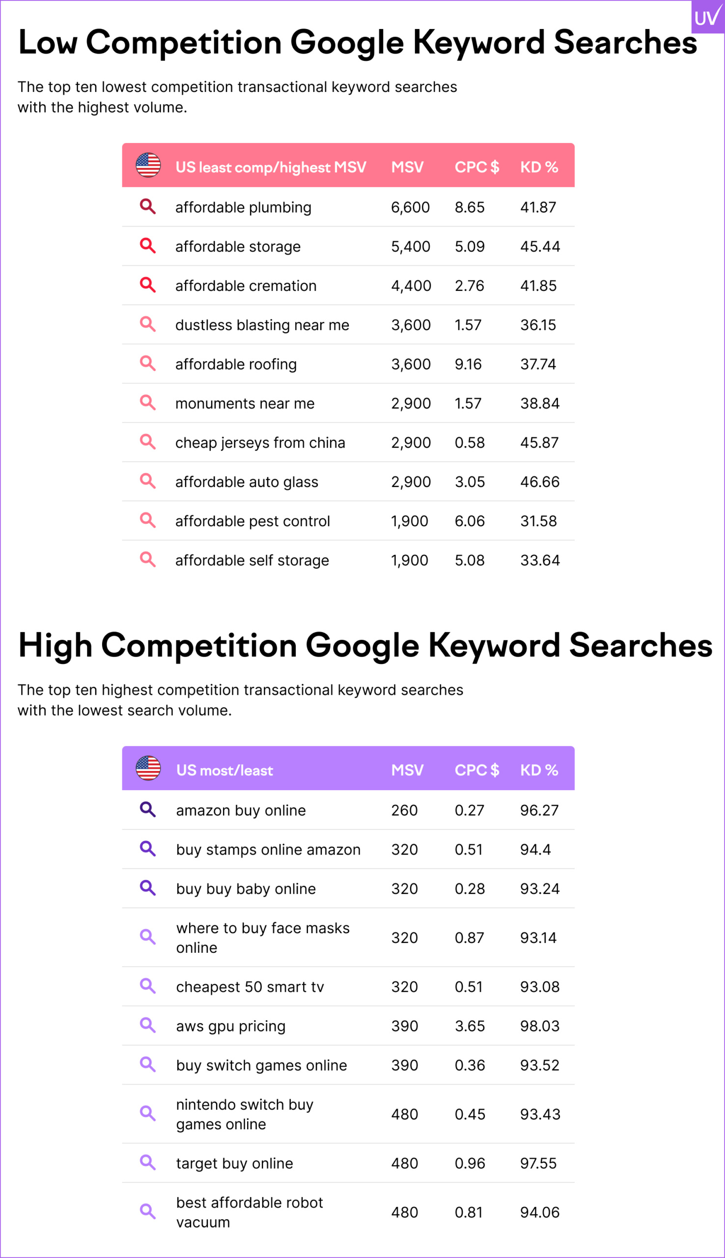 - Low-competition, high-volume keywords