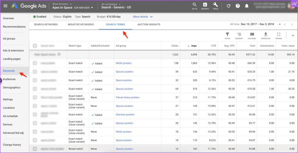 - The keywords that perform the poorest (high expense, little to no conversions)